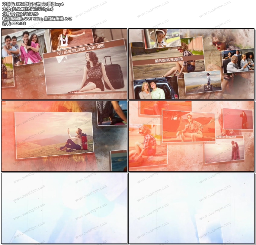 关键词:旅行,旅游,视频,相册,图片,照片,相片,展示,排版,AE,模板