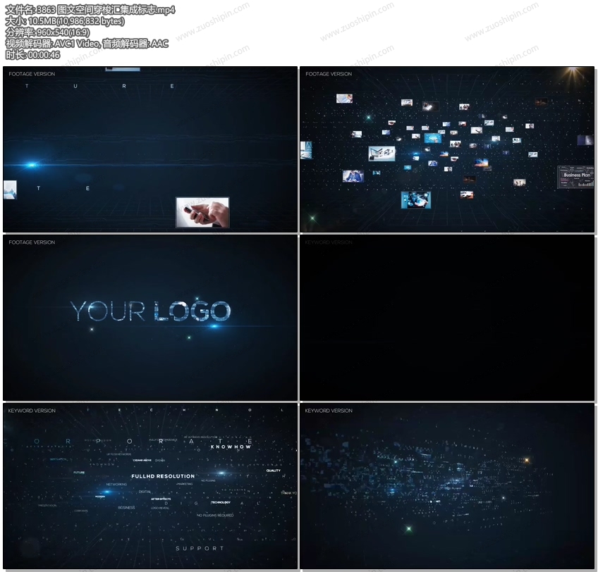 关键词:图片,文字,文本,字幕,标题,空间,穿梭,汇聚,汇集,LOGO,标志,AE,模板