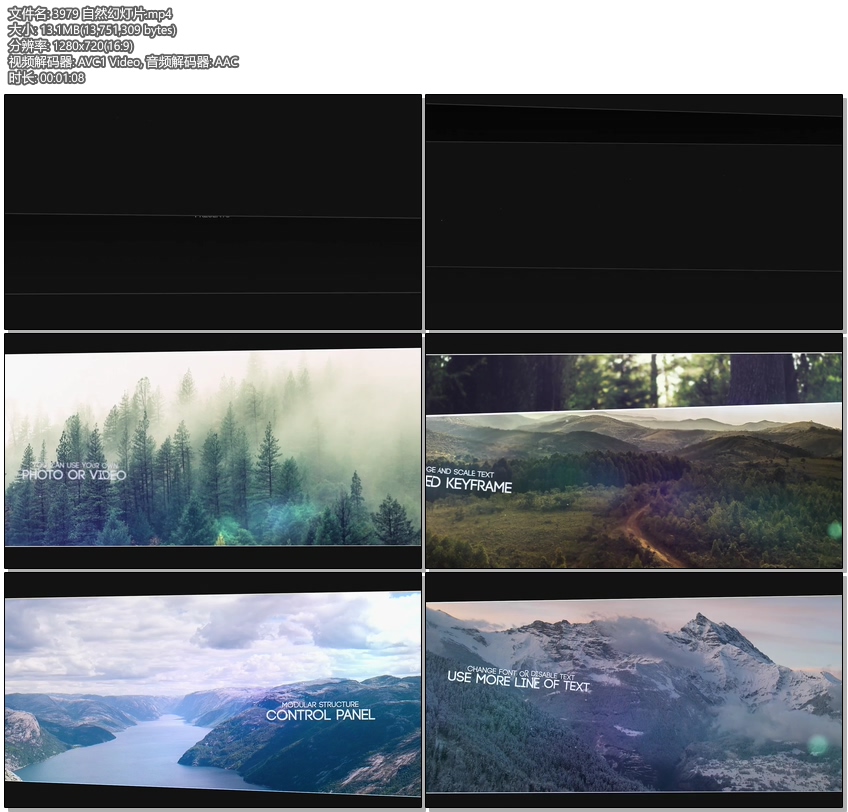 关键词:自然,风景,旅游,视频,相册,相片,照片,幻灯片,AE,模板,展示,运动,排版