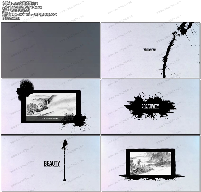 水墨风格幻灯片AE模板素材Ink Slideshow