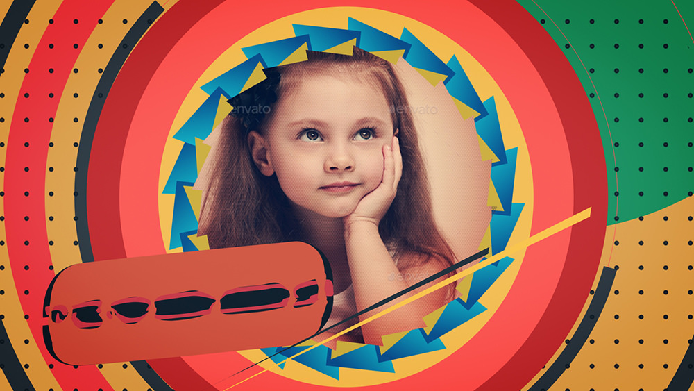 Colorful funky and retro project with dynamic animation which can be used as an intro or promo. Place videos or images. Customization is simple and fast. Project is built with shape layers because of that colors can be modified with ease.