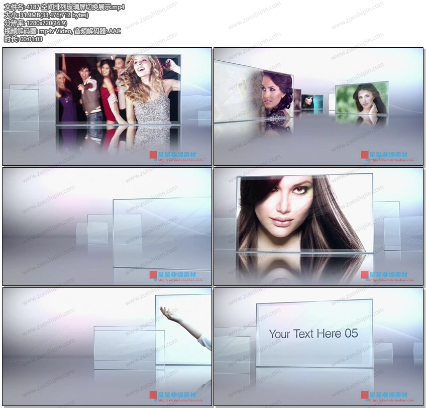 关键词:空间,玻璃,排列,屏幕,切换,展示,AE,模板,视频,相册,照片,相片,幻灯片