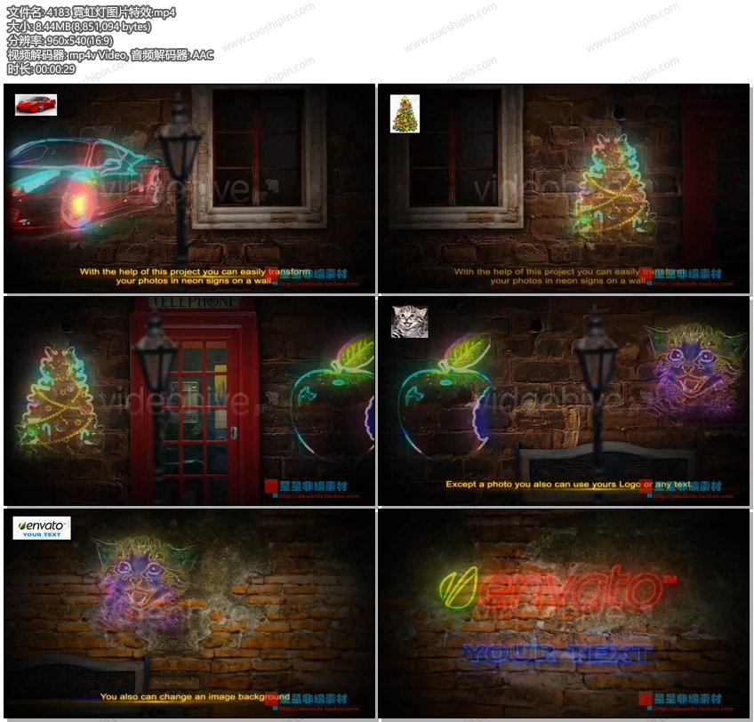 With the help of this project you can easily transform your photos in neon signs on a wall. Except a photo you also can use yours Logo or any text. You also can change an image background