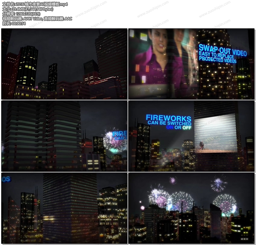 关键词:城市,夜景,夜色,风景,景色,灯光,高楼,大厦,AE,模板,广告屏,标题,烟花,视频,相片