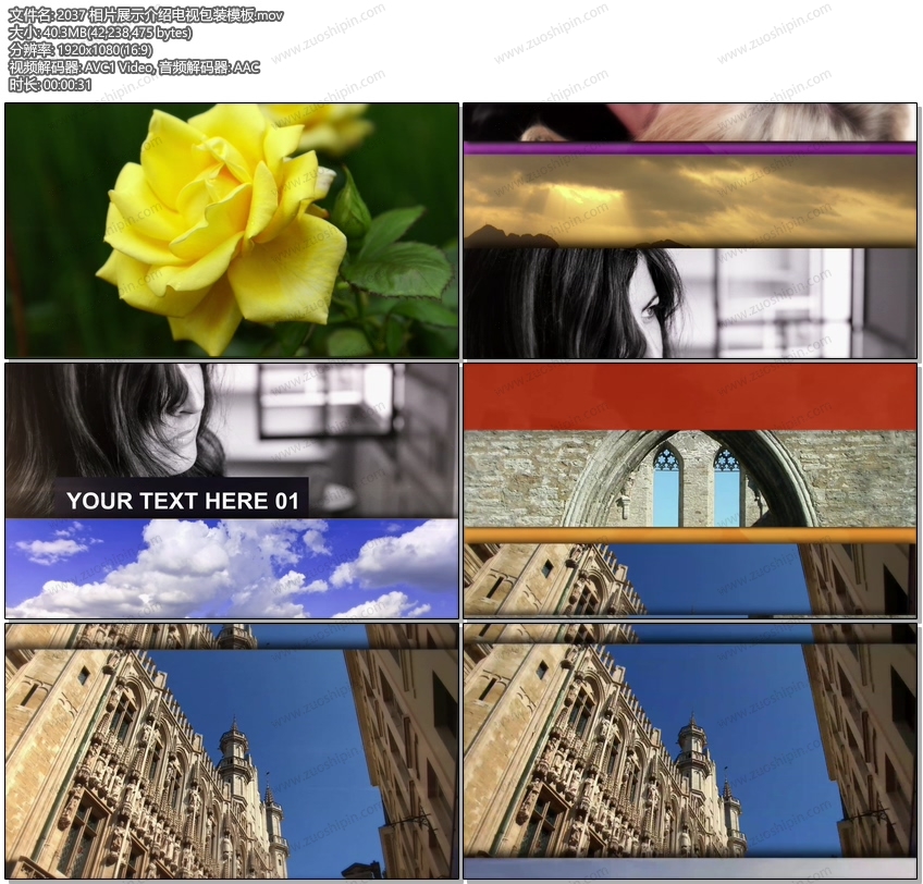 关键词:视频,相册,相片,照片,幻灯片,轮播,展示,电视,栏目,包装,介绍,AE,模板