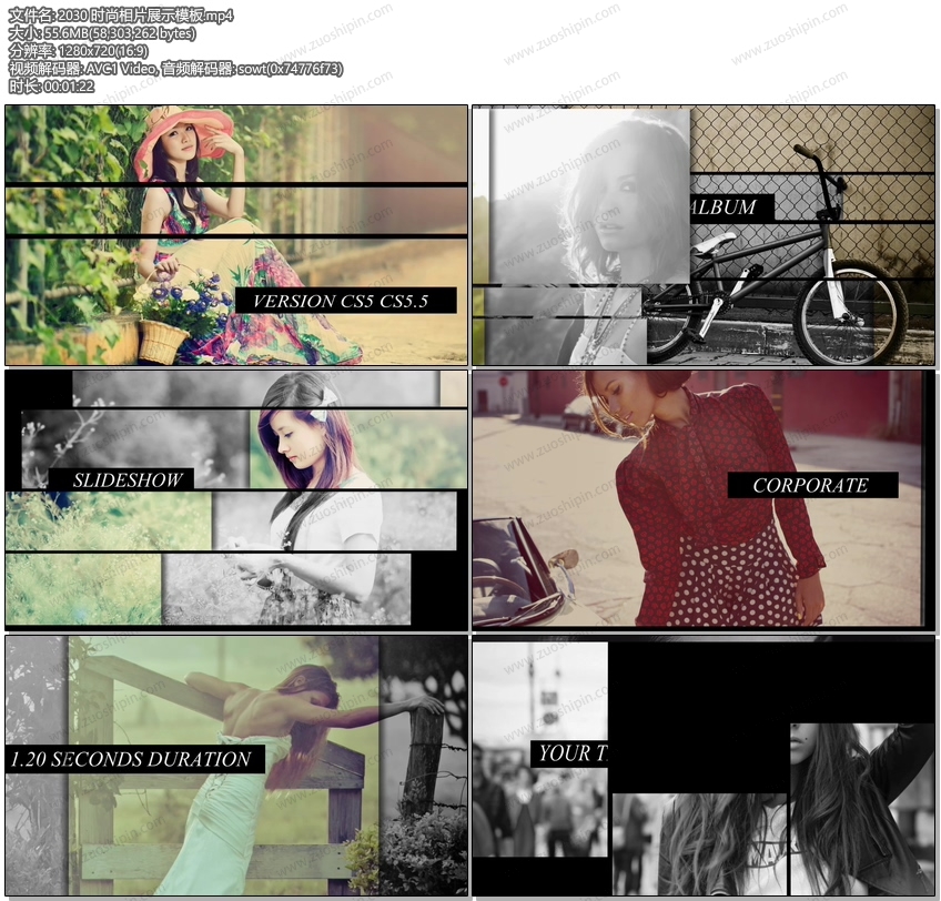 关键词:时尚,照片,相片,相册,视频,幻灯片,展示,AE,模板