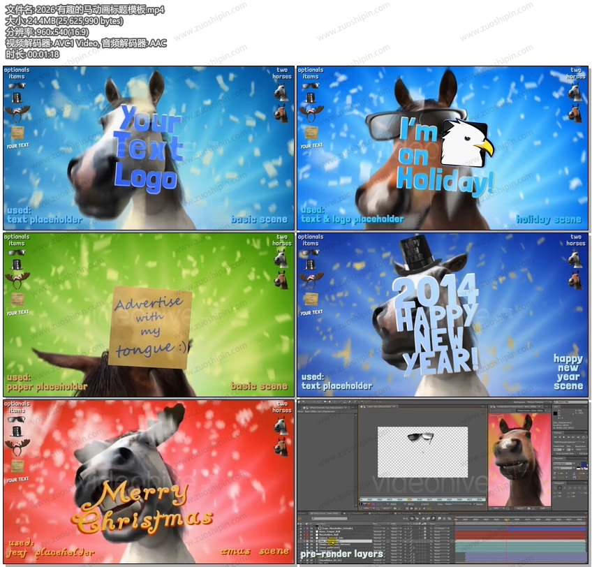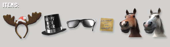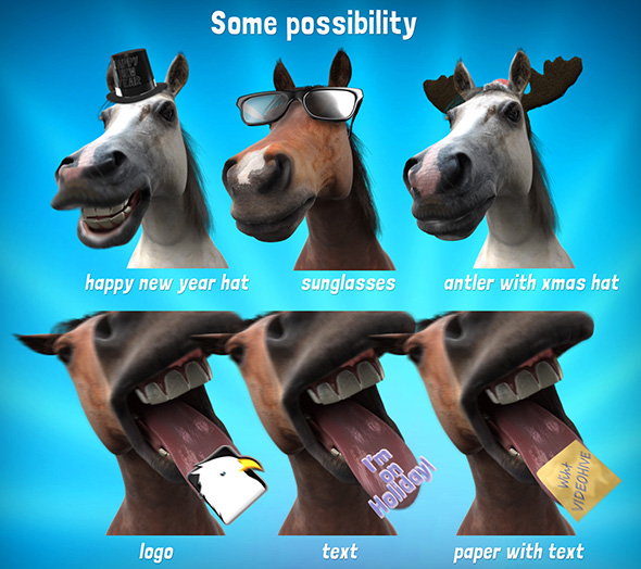 You can choose and set different items, accessorizes: Antler with Xmas Hat, Sunglasses, Happy New Year Hat, Note Paper with your text. All pre-render footage are loopable!