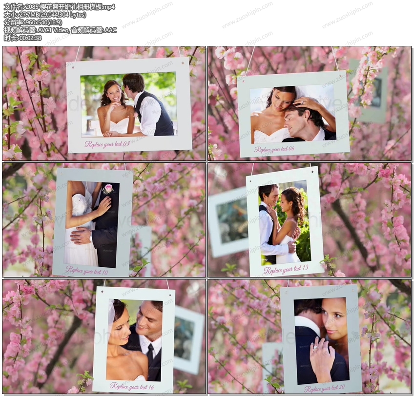 Beautiful gallery for your photos that swing on the branches of cherry blossoms. Great for creating the perfect wedding or a romantic album.