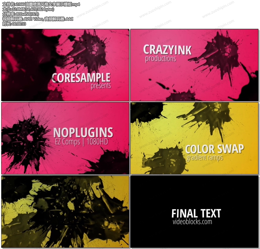 AE模板> 油墨喷溅风格文本文字标题展示模板nau-cs5-ink co