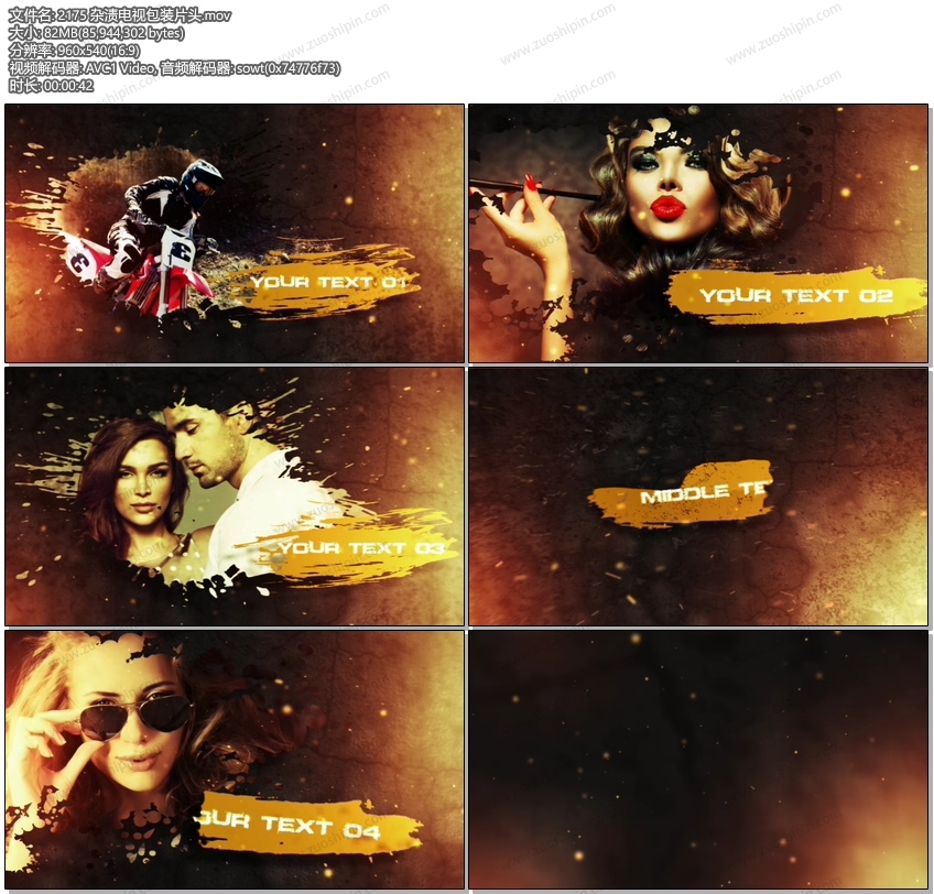 关键词:杂渍,污渍,电视,包装,片头,视频,相册,展示,AE,模板,标题