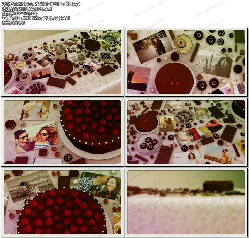 关键词:怀旧,风格,浓情,蜜意,巧克力,视频,相册,照片,相片,幻灯片,AE,模板,展示