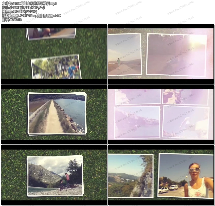 关键词:草地,视频,相册,相片,照片,幻灯片,堆叠,展示,AE,模板