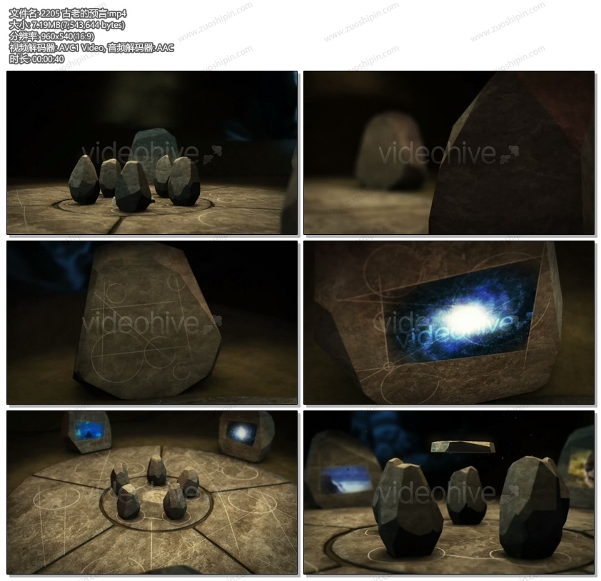关键词:古老,石碑,石头,符号,预言,开场,片头,视频,相册,预告,预告片,AE,模板,LOGO,标志