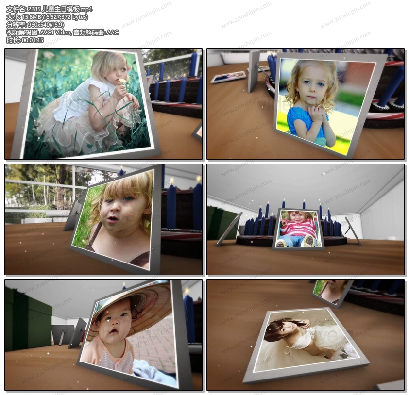 关键词:儿童,生日,快乐,相册,照片,相片,幻灯片,相框,AE,模板,展示,节日,活动