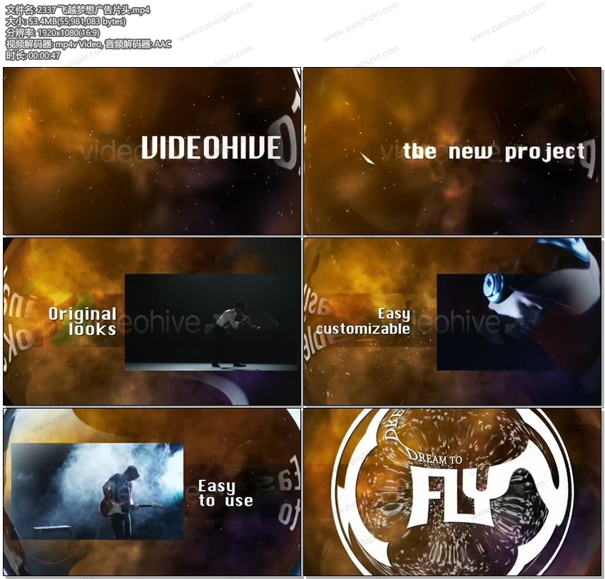 关键词:飞越,梦想,标题,图片,照片,视频,相册,相片,展示,片头,开场,AE,模板