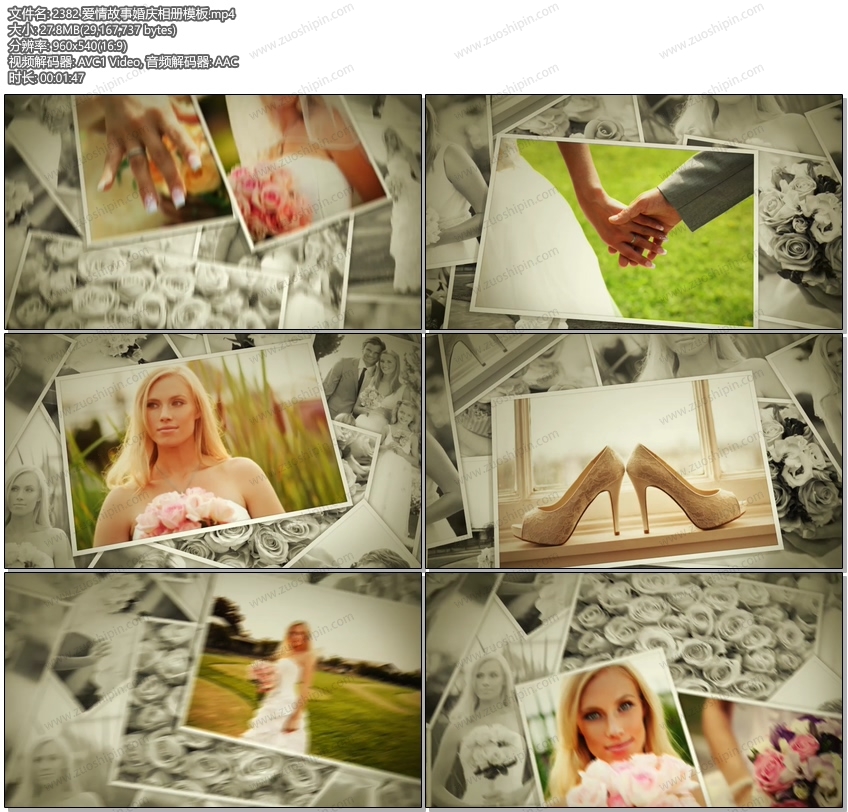 This wedding after effects template can be used to create a video with your wedding photos. The project is very versatile and can be used in numerous ways . As an example , you can use it to create a photo love story.