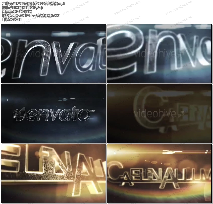 金属发光LOGO标志展示AE模板素材Metal Stamp Logo