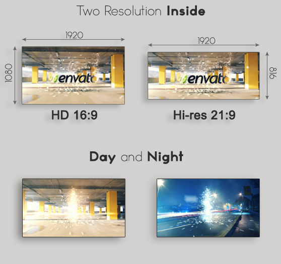 - 2 Two resolution: 16:9(1920-1080), 21:9(1920-816)