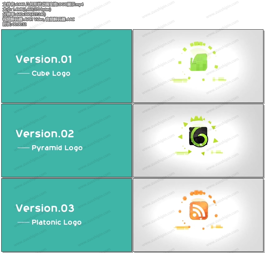 This is a Logo Sting , including 3 Versions, <Cube,Platonic,Pyramid> designed for the logo show. Format: 4s, Full-HD resolution(1920×1080), for AE CS4 and above.