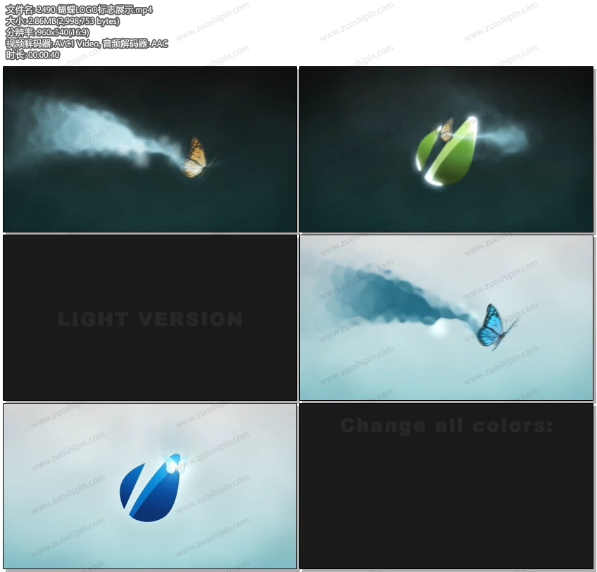 关键词:蝴蝶,烟雾,LOGO,标志,展示,AE,模板,飞过