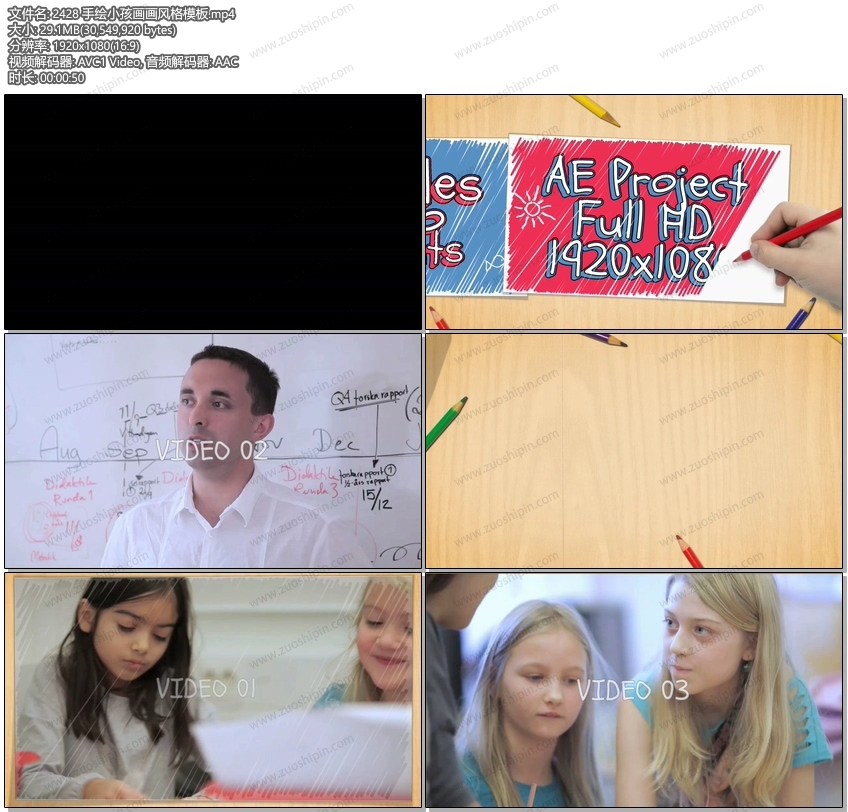 关键词:手绘,儿童,卡通,小孩,画画,绘画,风格,视频,相册,AE,模板,标题