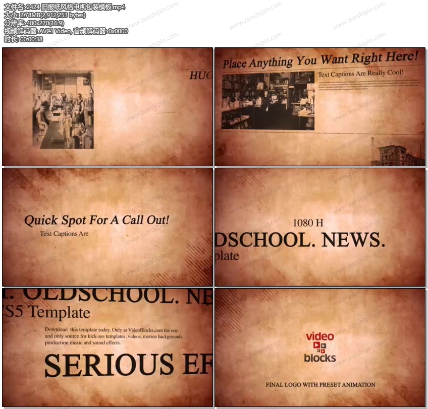 关键词:老旧,照片,报纸,风格,电视,栏目,包装,杂志,封面,标题,AE,模板,新闻