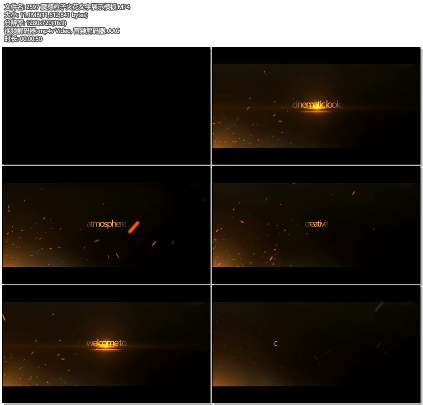 关键词:震撼,粒子,火花,光效,文字,文本,标题,开场,片头,展示,AE,模板