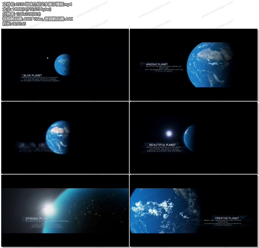 关键词:地球,太空,介绍,文字,标题,文本,展示,AE,模板,栏目,包装,影视,电影,开场