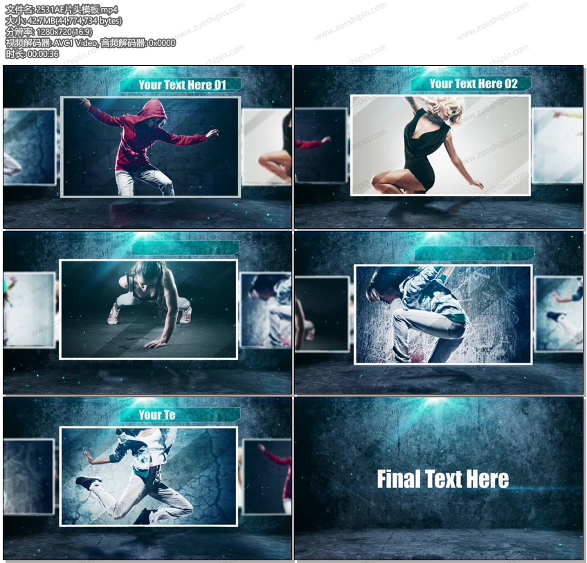 AE模板> 图片轮播照片幻灯片展示视频相册AE片头模板GRUNGE_SL