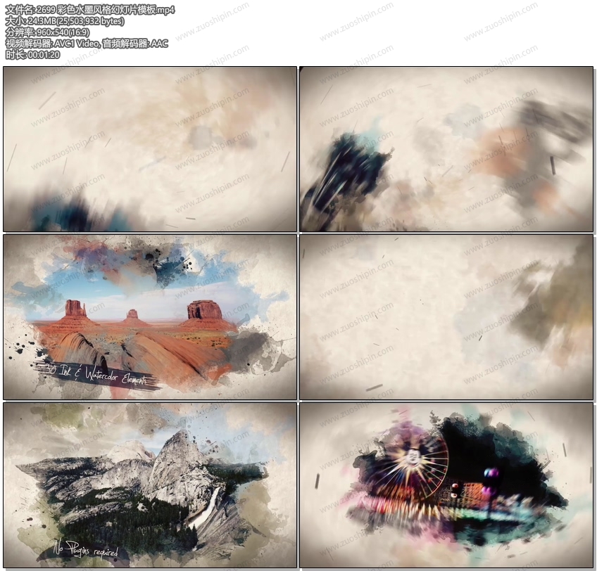 水墨动画过渡幻灯片AE模板素材The Dipping - Parallax Slideshow