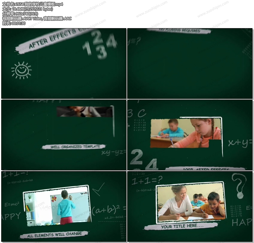 关键词:学校,儿童,视频,相册,照片,相册,展示,AE,模板