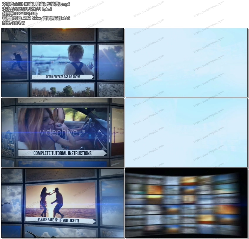 AE模板> 3D电视墙电视影视栏目包装模板3d video wall