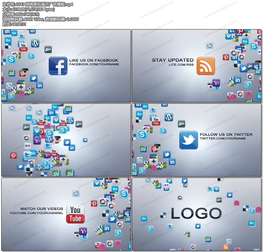 关键词:社交网络,图标,展示,广告,产品,LOGO,标志,介绍,宣传,简介,AE,模板,开场,片头