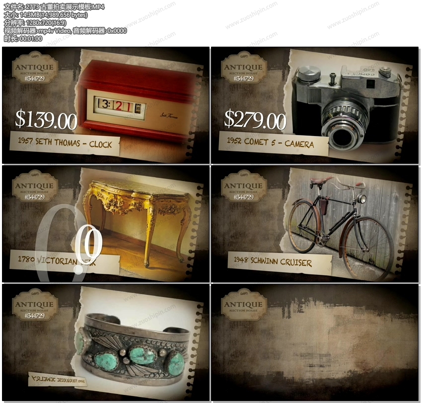 关键词:古董,拍卖,产品,展示,宣传,推广,广告,介绍,价格,标价,展示,AE,模板