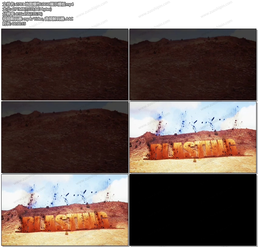 关键词:地面,山,山体,爆炸,爆裂,LOGO,标志,展示,AE,模板