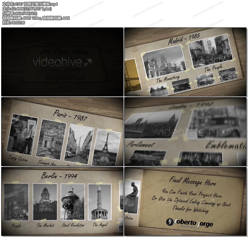 桌面相框展示成长回忆照片展示相册AE模板素材Vintage Memories