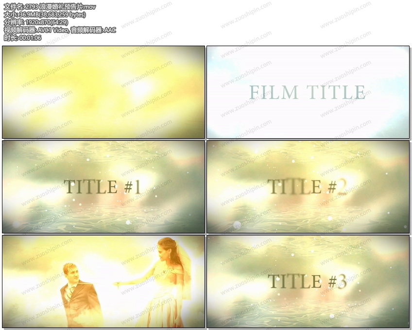 关键词:浪漫,结婚,婚礼,婚庆,预告,预告片,视频,相册,照片,相片,标题,展示,AE,模板