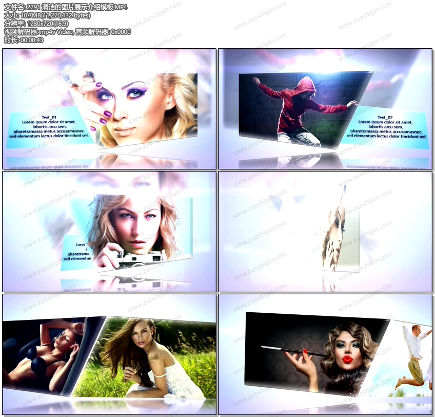 关键词:干净,简洁,图片,照片,相片,幻灯片,标题,视频,相册,展示,AE,模板