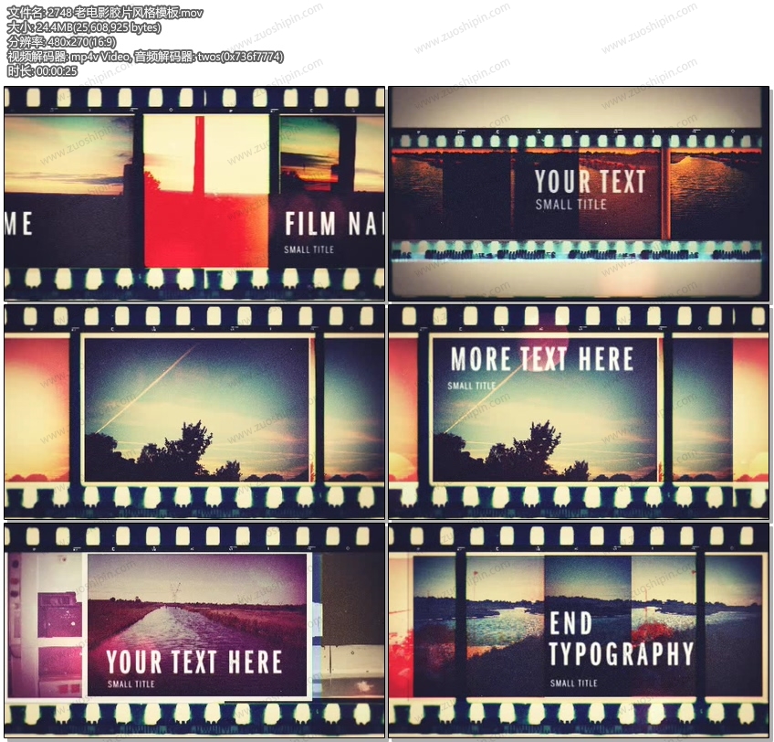 关键词:老,旧,电影,胶片,风格,视频,相册,照片,相片,幻灯片,标题,展示,AE,模板
