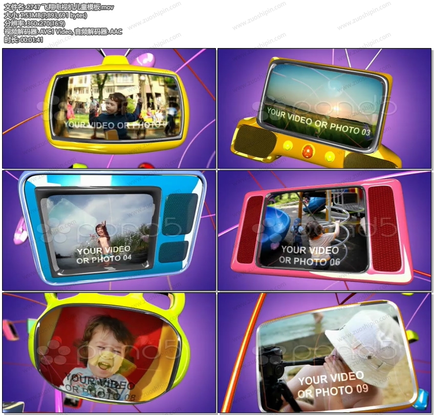 关键词:飞翔,电视,电视机,显示屏,儿童,卡通,动画,视频,展示,AE,模板