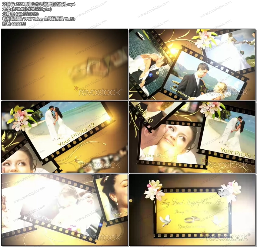 关键词:婚礼,婚庆,结婚,影视,记忆,胶卷,视频,相册,照片,相片,幻灯片,AE,模板