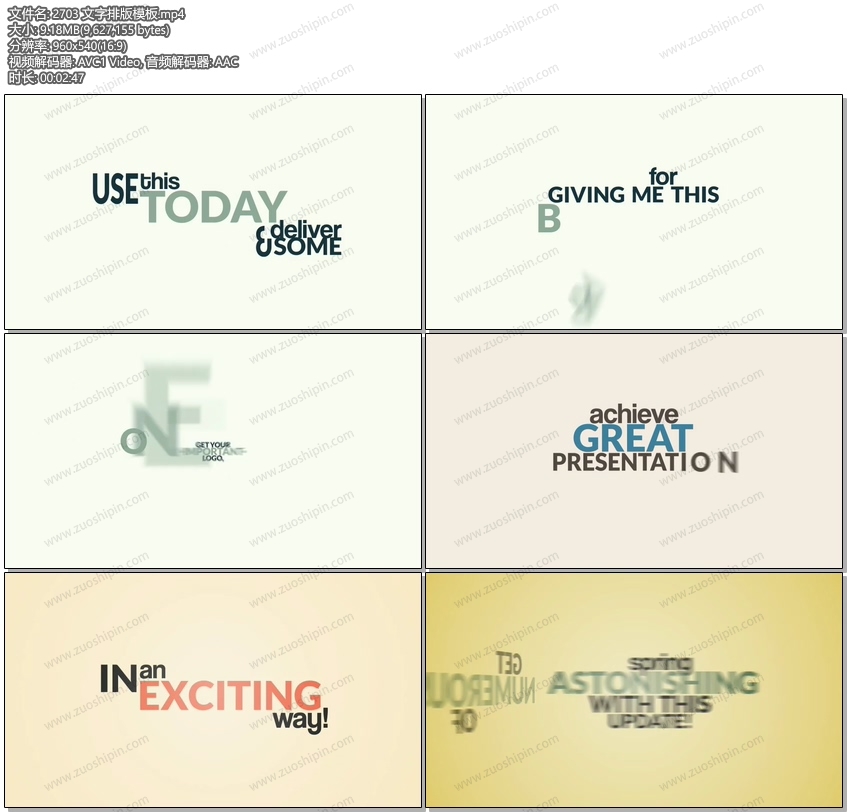 关键词:3d,可调整,清洁,颜色,企业,动态,优雅,介绍,动力学,开场,介绍,促销,文字动画,错字,排版3d, adjustable, clean, colors, corporate, dynamic, elegant, intro, kinetic, opener, presentation, promo, text animation, typo, typography