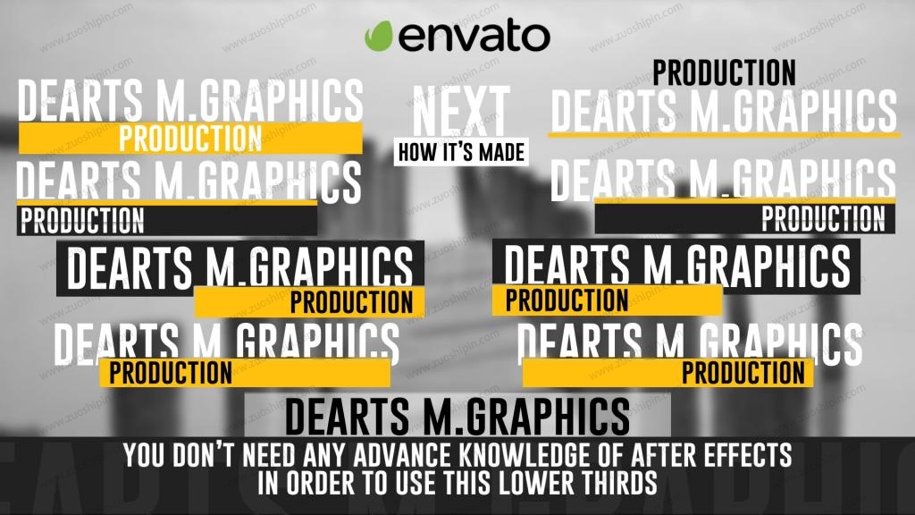 This Text Animation Lower Third pack can be customized to fit with any design. You can easily change the colors in just one simple step . Changing the text it’s also very simple .You don’t need any Advance knowledge of After Effects in order to use this lower thirds. Even if you never worked with the After Effects you can watch the video tutorial and complete the job.