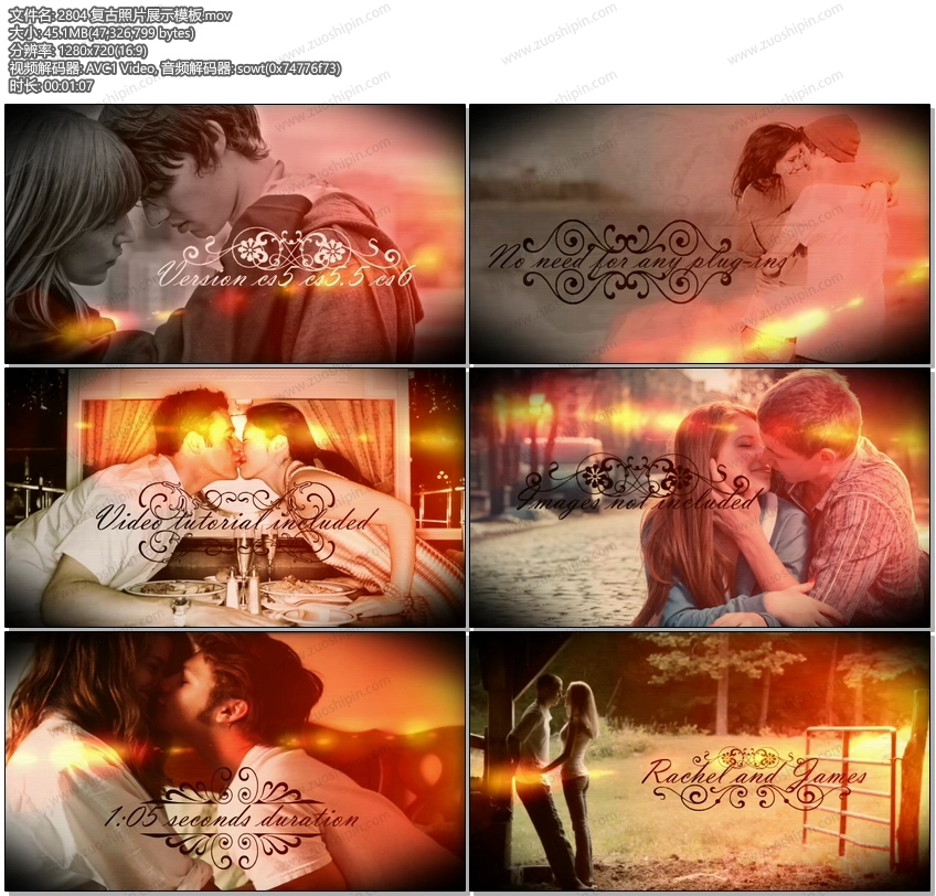 关键词:复古,温馨,浪漫,爱情,照片,相片,图片,展示,AE,模板,相册