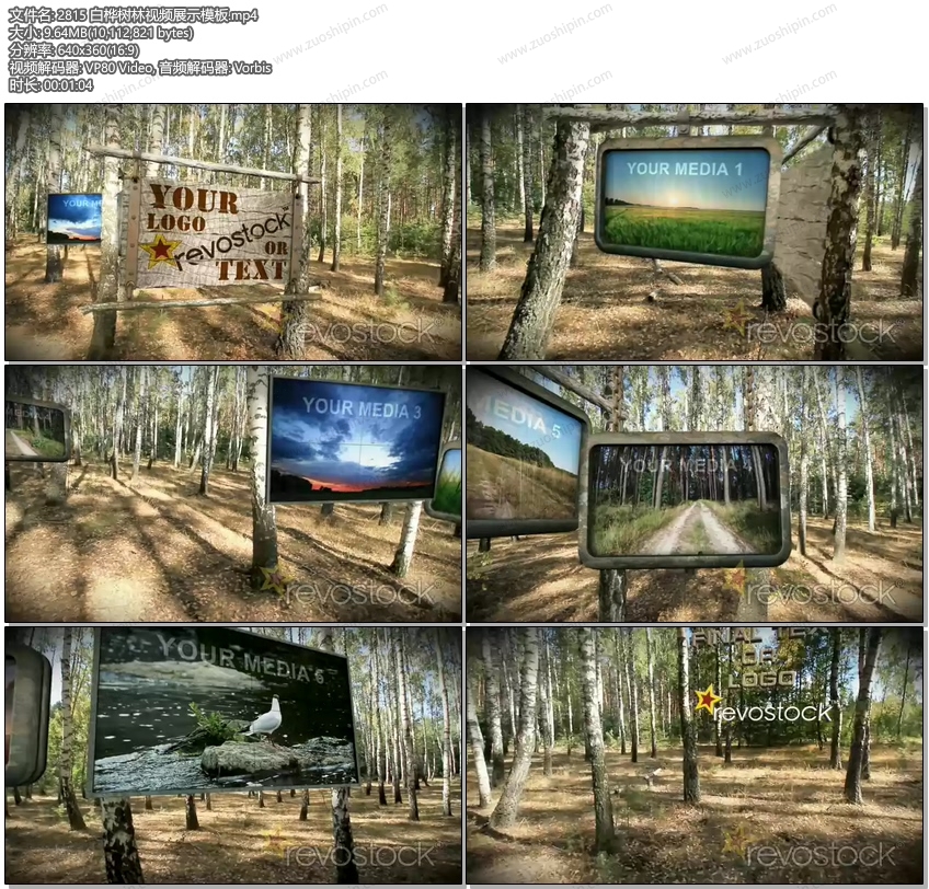 关键词:白桦树,树林,森林,视频,标题,相片,照片,幻灯片,相册,显示,屏幕,AE,模板,木板,黑板,路牌