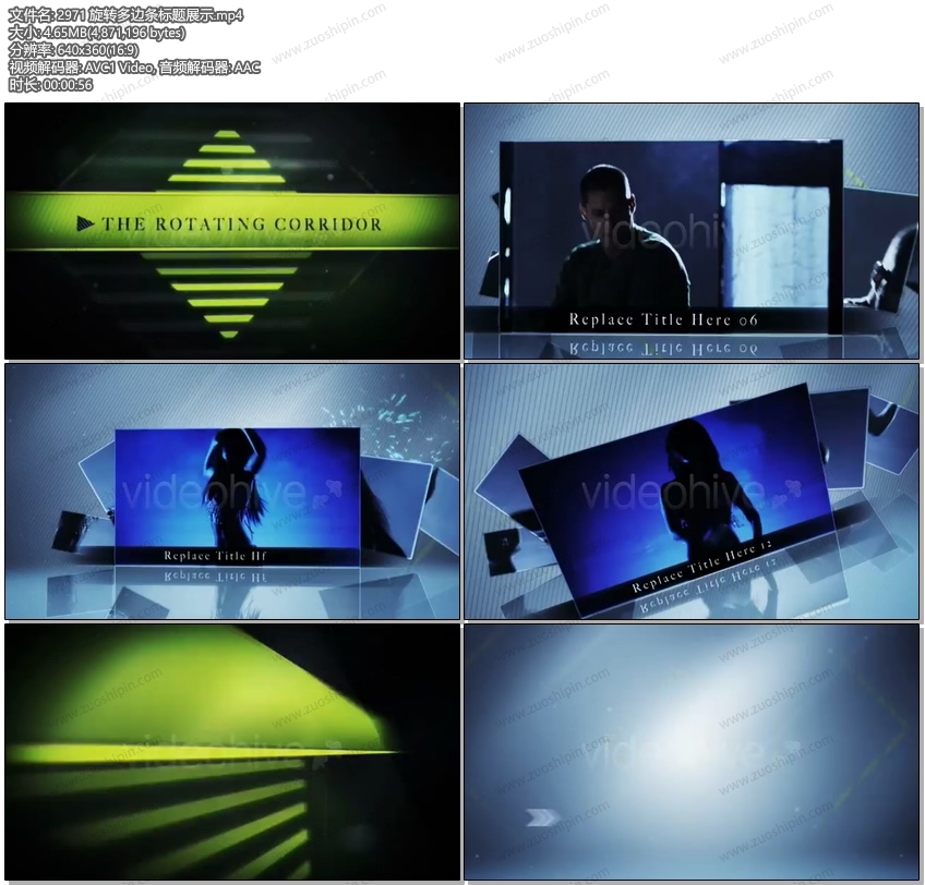 旋转多边条标题视频相册展示片头模板the rotating corridor