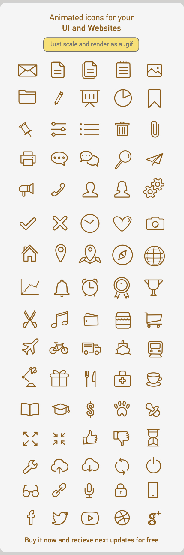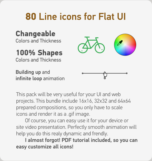 Here is a 80 Animated Line Icons for your presentations, websites and UI. Project features: