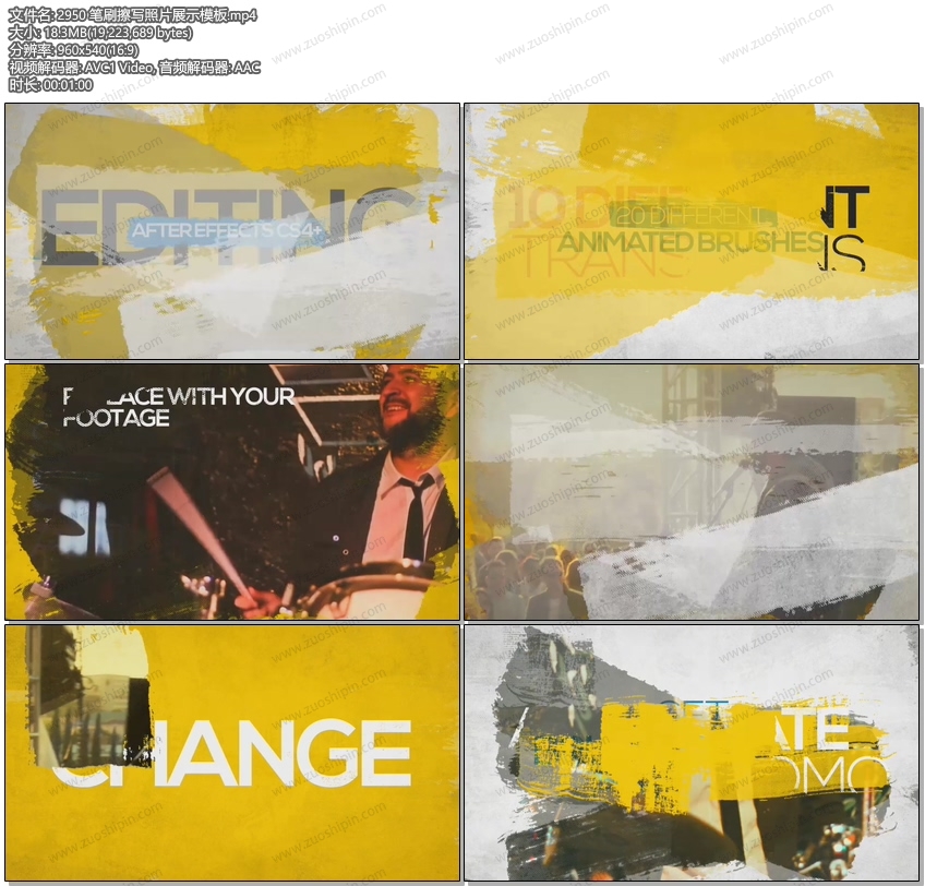 关键词:刷,商业,画廊,油墨,介绍,动力排版,油漆,画笔,介绍,促销,显示,幻灯片,停止运动,过渡brush, commercial, gallery, grunge, ink, intro, kinetic typography, paint, paintbrush, presentation, promo, reveal, slideshow, stop motion, transition