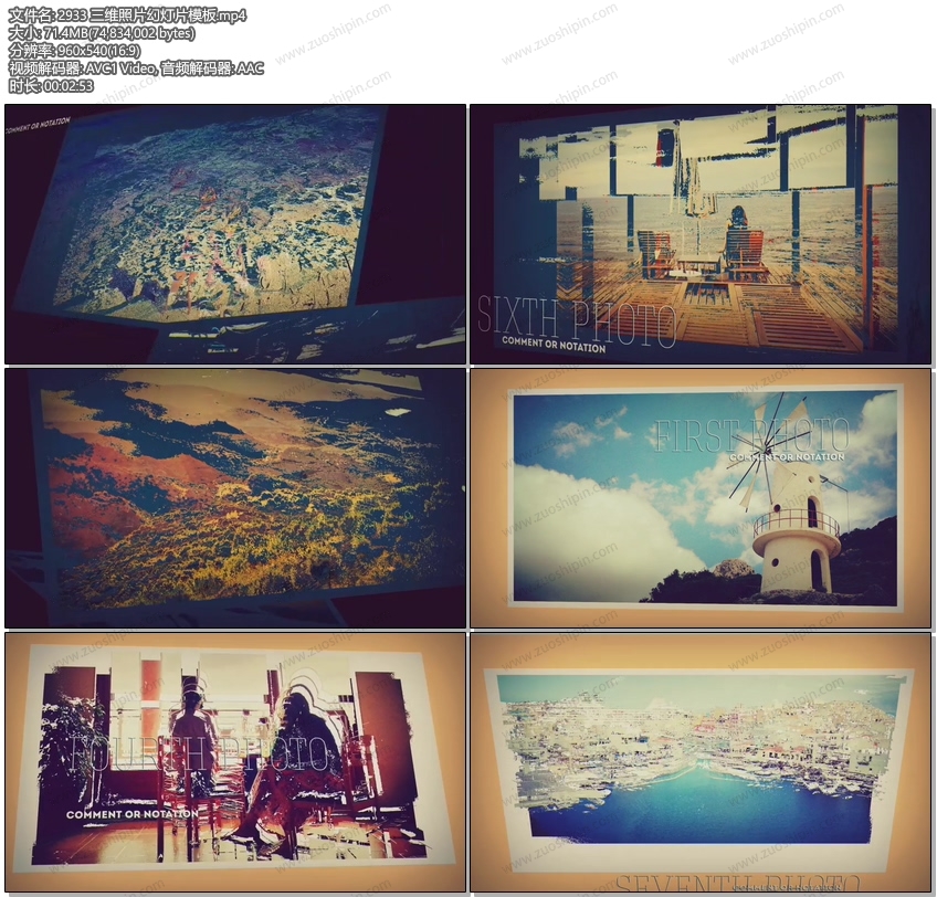 AE模板> 三维照片幻灯片展示相册模板Experimental 3D Photo Slideshow