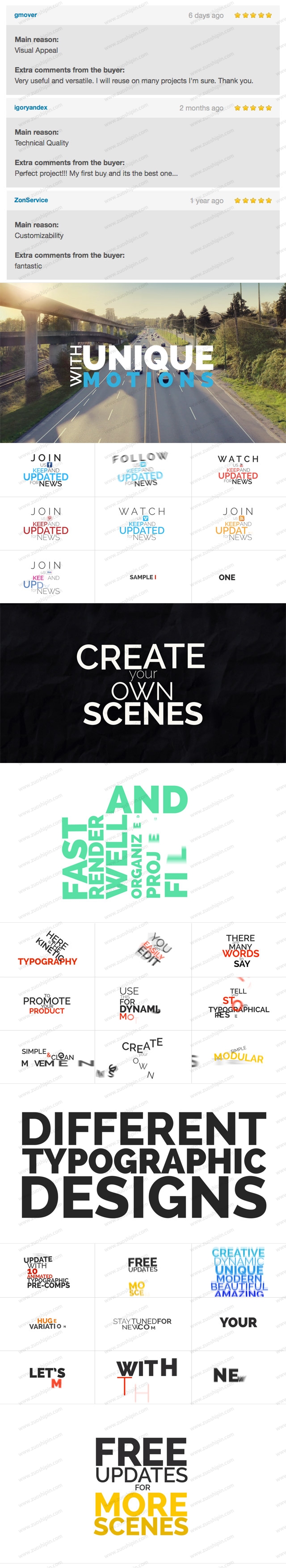 - UPDATE V4. Added 5 Typography Compositions and 8 Animated Backgrounds Transitions!